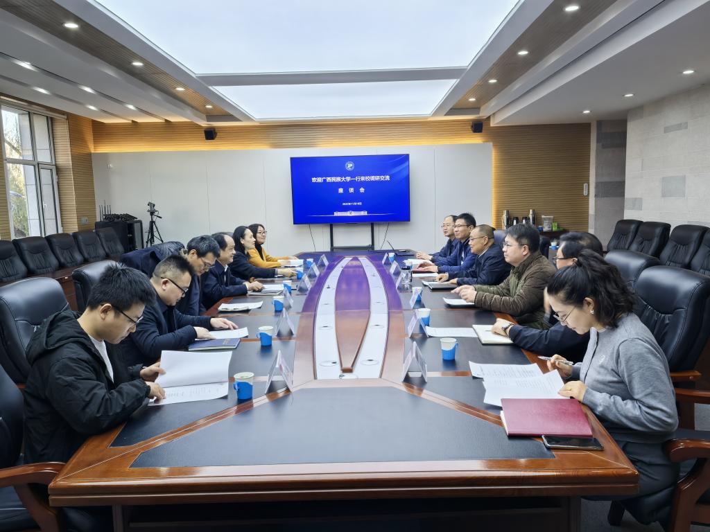 11月18日上午,广西民族大学党委常委、副校长蔡高根一行6人莅临我校开展调研交流。校党委委员、副校长白朴存出席座谈会并主持会议,计划财务处、信息化建设与管理中心、国有资产管理处、教师工作部(人事处)部门负责人及业务骨干参加交流。